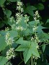 above a few clusters of female flower heads. Its pollen is spread by wind rather than by insects. This plant is a major