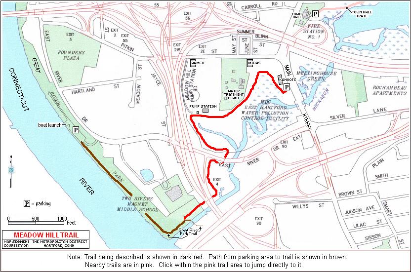then cross the street at the East Hartford Town Hall. The trail is at the rear of the Town Hall's parking lot.