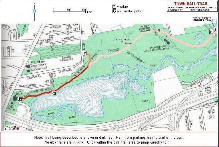 Parking and the trailhead are located in the rear of the Town Hall parking lot, off 740 Main Street in East Hartford,