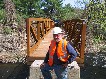 an area for construction access, removed the old bridge in one piece, reinforced the old abutments, and installed a new