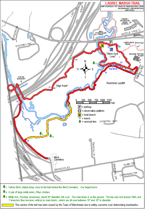 | April 24, 2018 | From April 24, 2018 Hartford Courant article, on the closing of sections of the Laurel Marsh Trail due to safety concerns over deteriorating conditions on sections of the Trail's boardwalk. (Reference the Laurel Marsh trail map to show the section being closed, by clicking here. |
